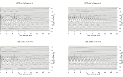 Figure 13 shows the results of the STI process for the four vowels. The zero-lag point is not shown in this representation, but the vertical ridge due to the pulse rate of the original waveform is clearly visible, and can be seen to shift as the pulse rate changes. The formants appear as 'flags' running horizontally from the vertical pitch ridge. The formats shift up in frequency and get narrower in the time-interval dimension from the long VTL waveforms to the short VTL.