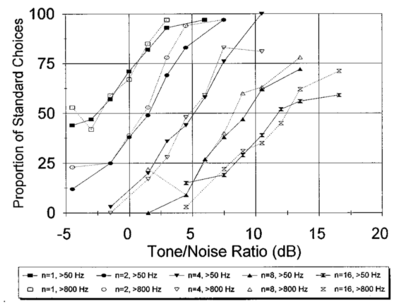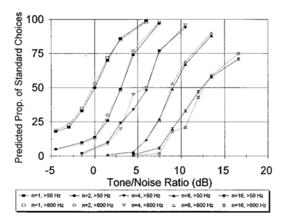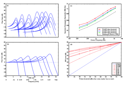 - Glasberg, B.R. and Moore, B.C.J. (2000). “Frequency selectivity as a function of level and frequency measured with uniformly exciting notched noise.” J. Acoust. Soc. Am., 108, p.2318-2328. [1] [2] [3]