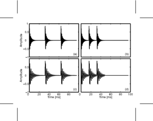 Figure 3 (as published in Patterson et al., 2008) shows the communication 'syllables' of four different animals. Each 'syllable' is an example of a pulse-resonance sound. In each case the pulse-rate is different, and the form of the resonance following each pulse is different. The pulse rate determines the pitch of the sound, and the form of the resonance contains information about the shape and the size of the resonating structures in the body of the animal.