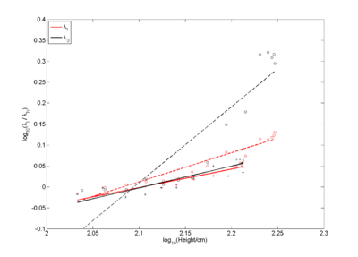 | frequency v's age | frequency v's height | log wavelength v's log height | ||||||||||||||